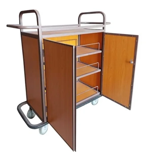 The Las Vegas Deluxe Trolley from Sanipex is a luxury hotel and banquet service trolley featuring walnut finish for premium hospitality environments.